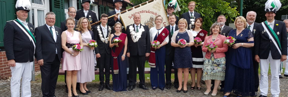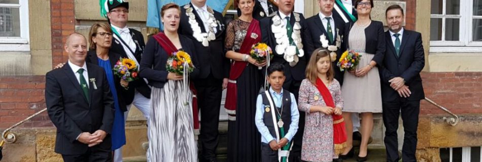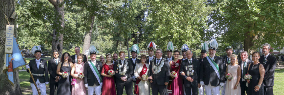 Hofstaat 2003: König Andreas Westholt mit Königin Elisabeth Kortwinkel, Prinz Mark-Andre Freund mit Prinzessin Melanie Göbel, Prinzgemahl Rudolf Kortwinkel mit Prinzgemahlin Ursula Westholt, weitere Mitglieder: Reinhard und Maria Klosterkemper, Klaus und Bärbel Mühlenkord