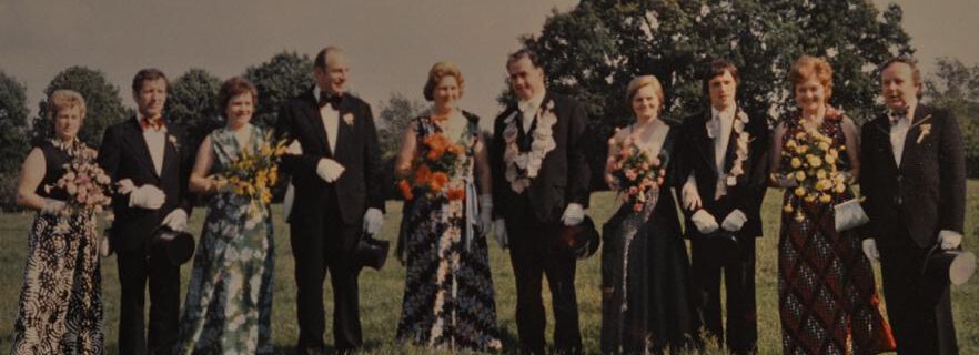 von links nach rechts: Marianne und Ernst Klopp , Prinzgemahlin Marianne Stritzel, Prinzgemahl Hugo Westholt, Königin Gerda Westholt, König Franz Stritzel, Prinzessin Heike Sölter, Prinz Klaus Malleis, Ulla und Bernd …