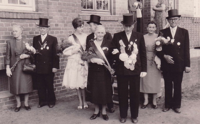 von links nach rechts: Johanna Thier, Bernhard Thier, Prinzessin Ursula Tombrock, Prinz Bernd Pöpping, Königin Agnes Thier, König August Pietig, Theresia Marx, Theo Marx