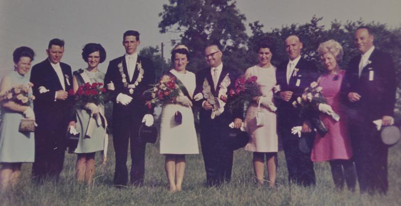 von links nach rechts: Margret und Alwins Steffens, Prinzessin Annette Klosterkemper, Prinz Heinrich Thier, Königin Karola Eggert, König Bernhard Thier jun., Hildegund Thier, Alfons Eggert, Maria und Eberhard Hoffschulte