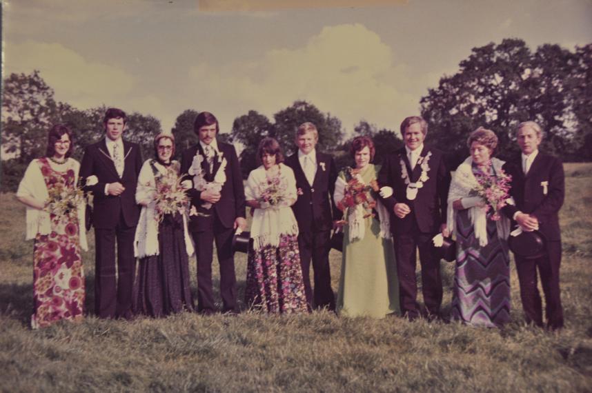 von links nach rechts: Annette und Heinrich Thier, Königin Maria Gellenbeck, König Alfred Böckmann, Mechthild Böckmann, Horst Gellenbeck, Prinzessin Christel Niemann, Prinz Manfred Niemann, Käthe und Walter Ernst