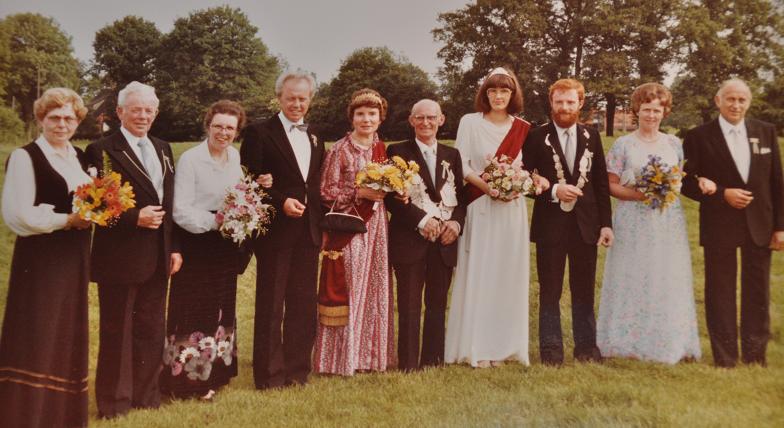 von links nach rechts: Änne und Heinrich Thier, Inge Beckmann, Dieter Poppenberg, Königin Maria Poppenberg, König Bernhard Beckmann, Prinzessin Maria Laumann, Prinz Christoph Beckmann, Lotte und Bernd Leusmann