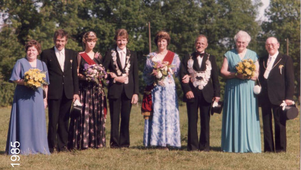 von links nach rechts: Ruth und Karl Elberich, Prinzessin Sabine Pühs, Prinz Michael Beckmann, Königin Elisabeth Günnewig, König Paul Konrad, Elisabeth und Heinrich Maas