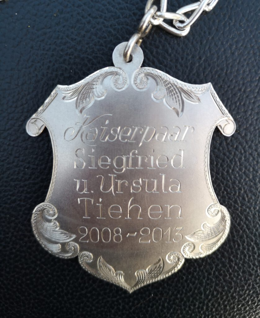 Zum 140jährigen Jubiläum errang die Kaiserwürde Siggi Tiehen. Von 2008-2013 vertrat er die Schützenbruderschaft St. Lamberti Mecklenbeck mit seiner Frau Uschi würdevoll und durfte das letzte Kaiserjahr mit seinem Sohn Raphael als König würdevoll abschließen. Ein herzliches Dankeschön dafür.
