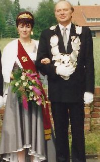 von links nach rechts: Beate Fellhöter, Frank Gehring, Erika Roer, Roland Diekhues, Königin Christiane Dieckhues, König Gerd Wenzel, Prinzessin Michaela Krause, Prinz Michael Kötter, Hildegard und Ferdinand Henrichmann