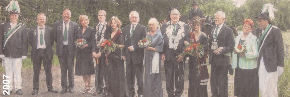 von links nach rechts: Königsoffizier Peter Seel, Manfred Niemann, Manfred Tenkhoff, Sabine Hülsmann, Prinz Sven Blank, Prinzessin Miriam Neuhaus, Franz-Josef Schäpers, Renate Pfefferle, König Paul Pfefferle, Königin Doris Schäpers, Kaiser …